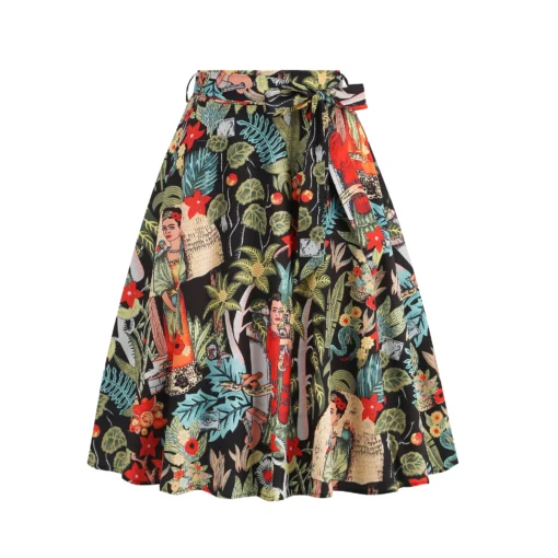High Waist Digital Print Maxi Skirt with Large Flowers And Gathers Splicing Style Women’s Fashion Skirts Polyester Fiber